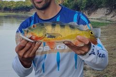 Les Anglais l'appellent mahi-mahi ou dolphinfish. Cette daurade est pêchée partout dans le monde généralement près de la surface. Soit au leurre de surface de type popper, soit en traîne avec un morceau de poisson à chair dur qui tient bien à l'hameçon, soit avec un vif, le nec plus ultra.