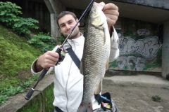 Sur les rivières plus courantes, les piles de pont sont aussi d'excellentes zones pour traquer le barbeau qui se capture assez facilement aux leurres, notamment à l'aide d'imitation d'écrevisse.