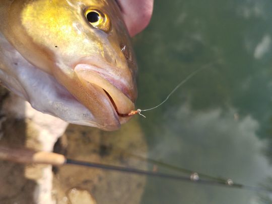 Il est également exigeant, refusera une nymphe trop lourde ou qui dérive mal.Il demande aussi beaucoup de précision car il ne se déplacera pas de loin pour aller prendre une nymphe, il faudra lancer juste. Je parle ici de jolis spécimens, les jeunes étant bien sûr beaucoup plus naïfs et voraces.