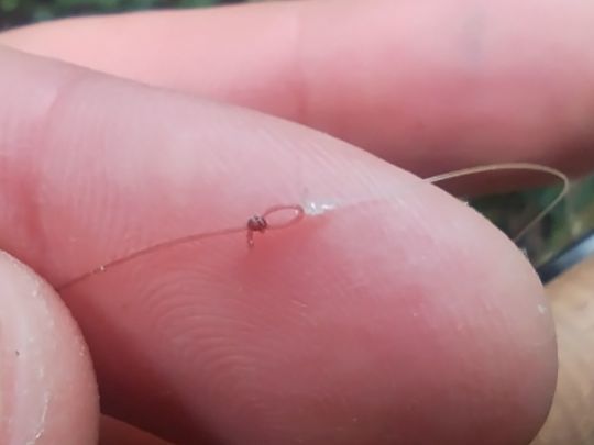 Pour le bas de ligne il existe autant de formules que de pratiquants. Ce qui est certain c'est qu'il faut pour des raisons de discrétion, éloigner le plus possible sa nymphe de sa soie. Il faut donc un bas de ligne long. Si vous êtes débutants, je vous propose une formule simple: 70 cm de nylon 45 centièmes, 60 cm de 40, 50 cm de 35, 50 cm de 30, 50 cm de 25, 50 cm de 20 centièmes. A ce niveau je réalise une micro boucle afin que cette partie du bas de ligne reste fixe. Puis je relie une pré-pointe de 50 cm en 18 centièmes et ma pointe de minimum 2,50 m en 14.