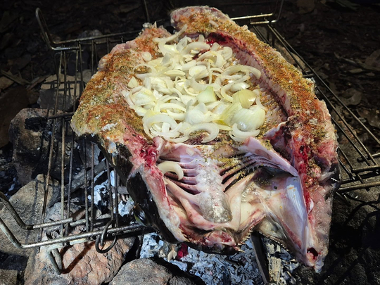Autre fait intéressant, le contenu stomacal des poissons. En effet, si vous vous lancez dans cette expédition, vous n'aurez d'autre choix que de manger quelques aïmaras. Grillé, boucané ou encore en blaff, c'est un poisson délicieux. Un poisson de 4 kg permet généralement de nourrir six personnes sans souci. Leur préparation est l'occasion de voir un peu ce qu'ils ingurgitent, et d'en apprendre un peu plus sur leurs habitudes alimentaires. Et là c'est la surprise. Quasiment 100 % des poissons ont l'estomac vide, et ce n'est pas faute de proies. Ce constat interroge : les poissons se nourrissent-ils principalement de très petites proies, à l'image des yayas, petits poissons blancs présents en très grande quantité ? Ont-ils une digestion particulièrement rapide ? Ces interrogations restent sans réponse, mais c'est assez intéressant à noter.