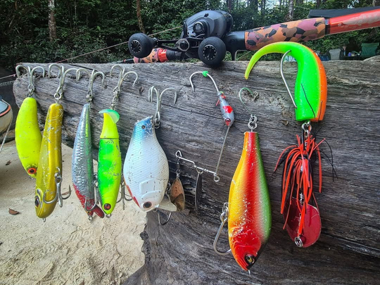 Le premier groupe est certainement celui qui a fait la réputation du prédateur : le top water. Il est donc inconcevable de partir sans un bon vieux search bull, véritable aimant à aïmara, quelques whopper plopper 130 ou 190 mm, et autres poppers et stickbaits. En fin de journée, ces leurres feront un massacre. Les buzzbait fonctionnent également très bien.
