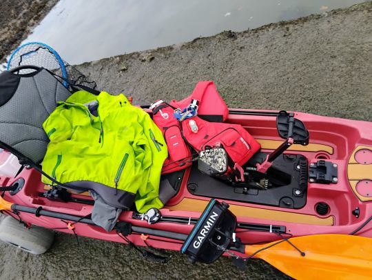 La deuxième journée se fera le 18 novembre et la météo n'est pas du tout la même. Obligé de ressortir les vêtements d'hiver avec un 6°C au lever du jour et un 10°C au plus « chaud » de la journée. Vêtement de peau technique sur le torse, combinaison LongJohn de 3 mm spéciale kayak, revêtement technique manches longues par dessus. Extrémités couvertes par des mitaines pour les mains, chaussettes thermiques et chaussons néoprène par dessus. Ça c'est pour la barrière thermique. Pour la barrière étanche, pantalon déperlant et veste de quart étanche avec manchons poignets et cou, de marque NRS pour l'ensemble des vêtements.