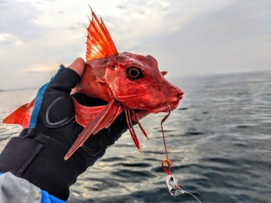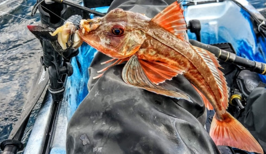Les espèces ciblées avec cette technique vont être les vieilles, elles mordent toute l'année. Les grondins aussi sont bien présents, il y a 4 variétés différentes en rade, avec deux espèces bien représentées, le grondin perlon et le grondin rouge. Ces poissons sont toujours l'occasion de faire de très belles photos, ils ne manquent pas de couleurs. Il est également possible de toucher des roussettes, elles aussi sont présentes toute l'année et en nombre. L'espèce la plus représentée, dans ces pêches hivernales, c'est, bien sûr, la dorade grise.