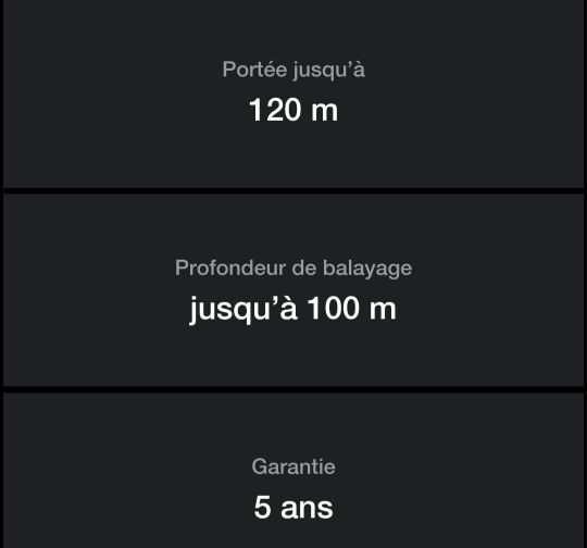 Le sonar offre une portée d'environ 120 mètres et peut sonder jusqu'à 100 mètres de profondeur (plus que suffisant que ce soit en lacs, en rivière…).