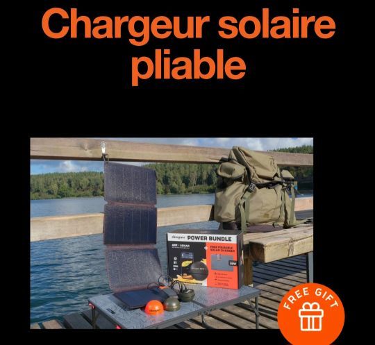 Le « Power Bundle » n'inclut pas seulement le sonar ; il vient avec un chargeur solaire pliable de 36 W, étanche (norme IP67), livré avec un adaptateur USB-C/USB-A et des mousquetons pour l'accrocher facilement. Ce panneau solaire permet de recharger le sonar (et potentiellement d'autres appareils) lors de vos sorties en pleine nature loin d'une source d'énergie.