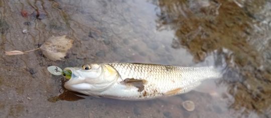 Deuxième temps, je pêche vers l'amont et j'anime avec quelques coups de scion mon jerkbait de petite taille entre 5 cm et 7 cm. L'attaque n'est pas forcément brutale, parfois il s'agit d'une résistance, d'autres fois les touches sont plutôt fines et il n'est pas rare de rater les poissons qui poussent le leurre sans s'en vraiment s'en saisir. Sur un même pool, il est possible de toucher plusieurs poissons parfois de belles tailles.