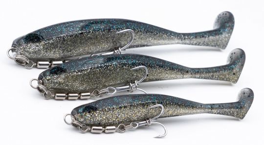 La vraie nouveauté est le Pit Swimmer, dont nous vous avons déjà parlé dans notre Hebdo Matériel. Ce leurre souple au corps profilé reste planant à l'arrêt et se lance à longue distance. Avec son paddle inversé, même à récupération lente, il brasse beaucoup d'eau. Lors des tests, il s'est montré efficace aussi bien sur les bars que les brochets ou les aspes. Il est aujourd'hui disponible en trois tailles (100, 125 et 150 mm pour 9, 17 et 29 g) et en six coloris. Fiiish le commercialise pré-monté pour les zones shallow avec un triple sur le ventre (9,90 € l'unité). On peut aussi l'acheter nu (14,90 € la boîte de trois) et le monter en texan ou avec une simple tête plombée.