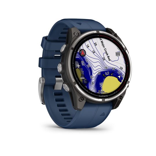 Couplée à l'électronique de bord Garmin, elle peut afficher au poignet des données clés comme la profondeur, la vitesse ou le vent, utiles pour lire un poste ou suivre une dérive.