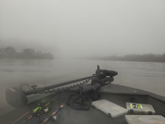 Le froid est toujours aussi intense, le brouillard ne va jamais se lever. Mais les touches régulières nous réchauffent un peu. Nous avons aussi la satisfaction d'avoir aujourd'hui trouvé quelque chose, ce qui nous aide à supporter les conditions. Nous serons même récompensés par un gros poisson pris sur la taille 125.