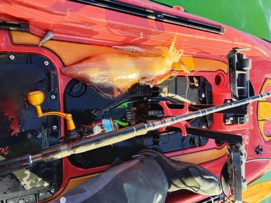 - L'EGI EBI Q TR-TIPRUN : une turlutte assez lourde, 28g, prévue aussi pour le lancer du bord et qui a très bien fonctionné sur les grosses seiches.