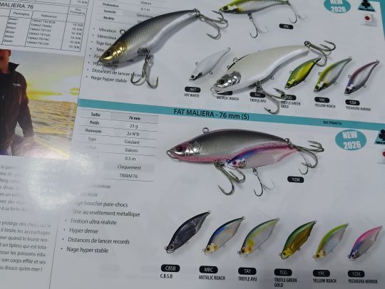 De nouvelles séries aussi, surtout chez Trefle creation distribuée par Flashmer. Les Maliera en 58 mm et le Fat Maliera en 76 mm sont des lipless minnow silencieux pour les longs lancers.