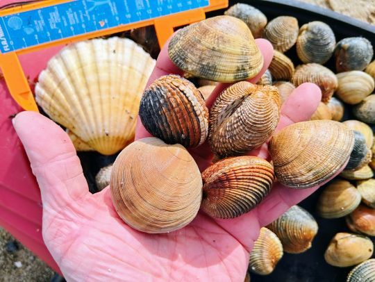 En me baladant ainsi je trouverai aussi de la coquille Saint-Jacques. Pour cette espèce c'est une maille de 11 cm et un quota de 30 par personne, c'est largement suffisant. Je ferai aussi quelques clams, la maille est à 4,3 cm également, ces coquillages ont un goût de noisettes, délicieux. Mes coins à crabes et à ormeaux n'étant pas découverts, je n'insisterai pas. Je terminerai quand même ma session par mon premier casse-croûte 2026 pris sur l'estran, c'est toujours sympa, au final, une bonne petite reprise en douceur.