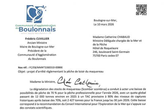 L'opposition au quota de cinq maquereaux ne vient plus seulement des pêcheurs de loisir. À Boulogne-sur-Mer, l'ancien ministre de la Pêche Frédéric Cuvillier interpelle directement la ministre Catherine Chabaud et demande une révision du plafond de capture.