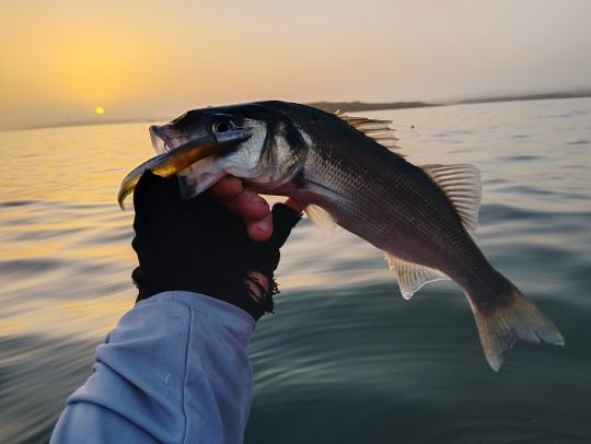 La zone de mise à l'eau est sous le vent, mais je commence quand même par la travailler au leurre souple. J'ai monté un corps Eel sur une tête balle profyler d'Astufish en 12 grs. Il y a une grande zone de sable entre deux zones rocailleuses. Dès les premiers lancers, cela fonctionne. Les poissons sont là, j'en ferai plusieurs d'affilés au jeu du grattage. Des poissons juste sous la maille, mais c'est agréable de sentir qu'on ne s'est pas trompé.