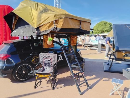 En marge des flotteurs, j'ai également été bluffé par la marque suisse Swisskings qui propose des tentes de toit qui transforment tout véhicule en véhicule prêt à partir à l'aventure, avec un maximum de confort. Ils proposent aussi toute une gamme d'accessoires repliables tels que sièges et tables. Cela s'inscrit tout à fait dans cet esprit balade/randonnée en autonomie et en toute liberté.